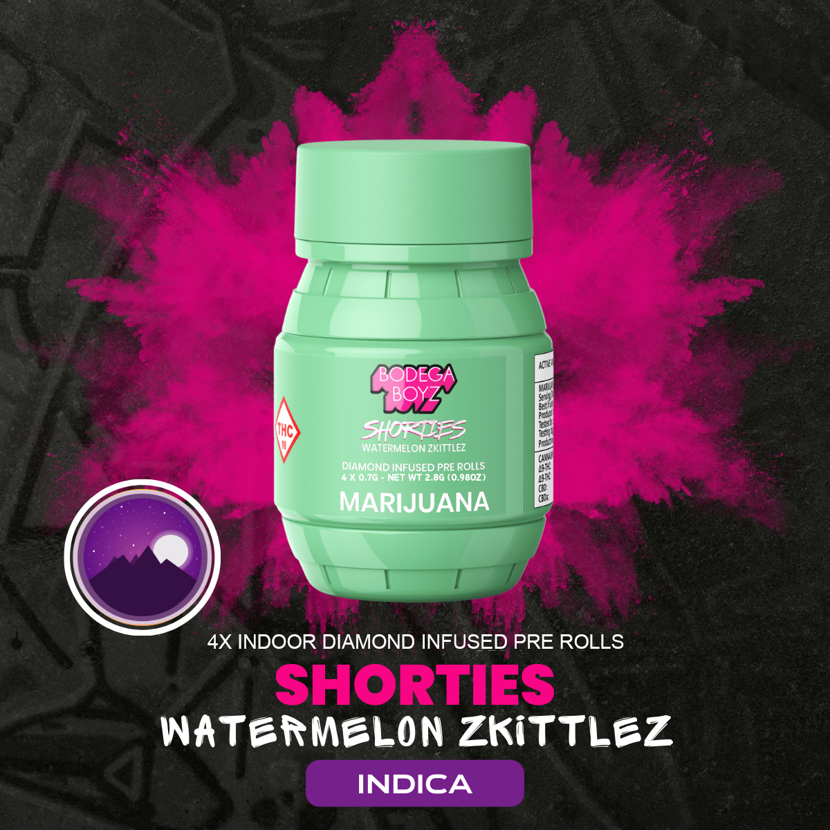 BODEGA BOYZ - PREROLL INFUSED - 0.7G - 4PK - WATERMELON ZKITTLEZ - INDICA