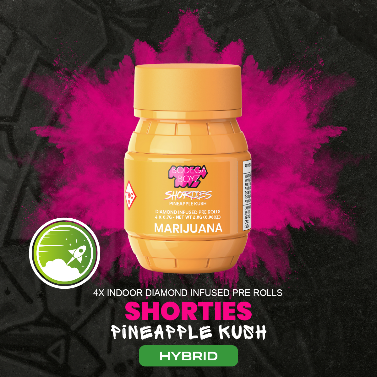 Pineapple Kush | 0.7g | 4pk Diamond Infused Pre-Rolls | Bodega Boyz