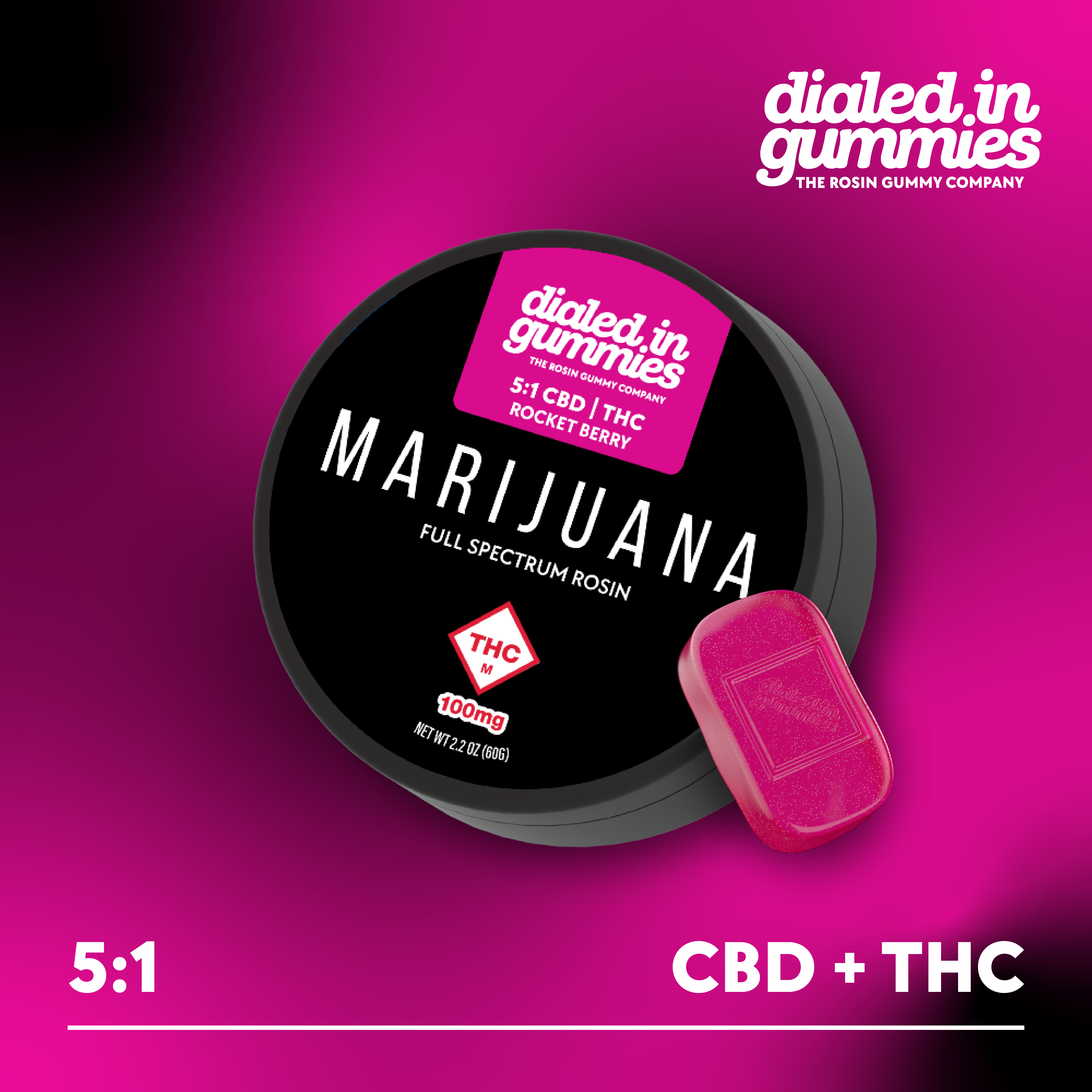 Dialed In Gummies | Rocket Berry Relax 5:1 CBD/THC Rosin Infused | 10pk 100mg