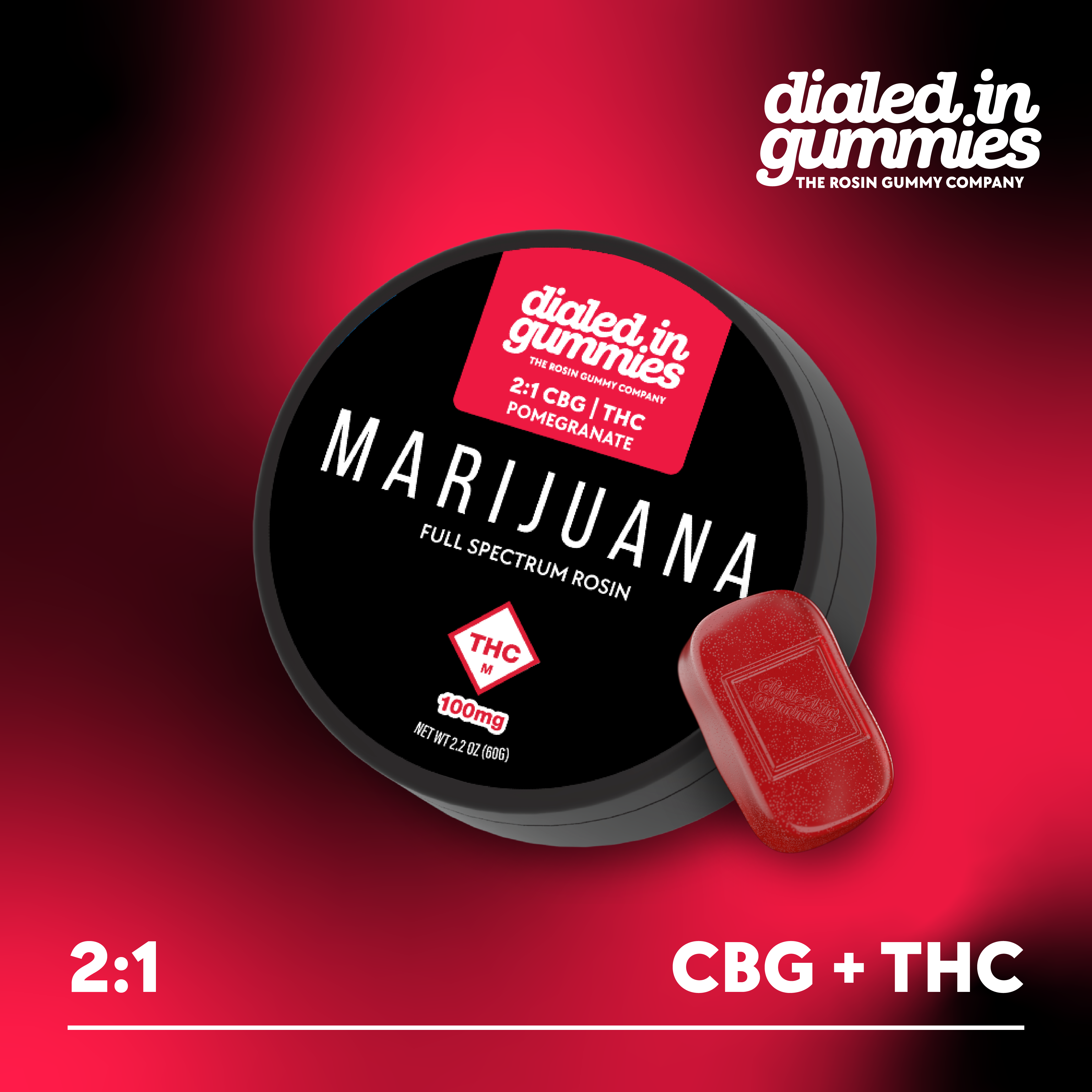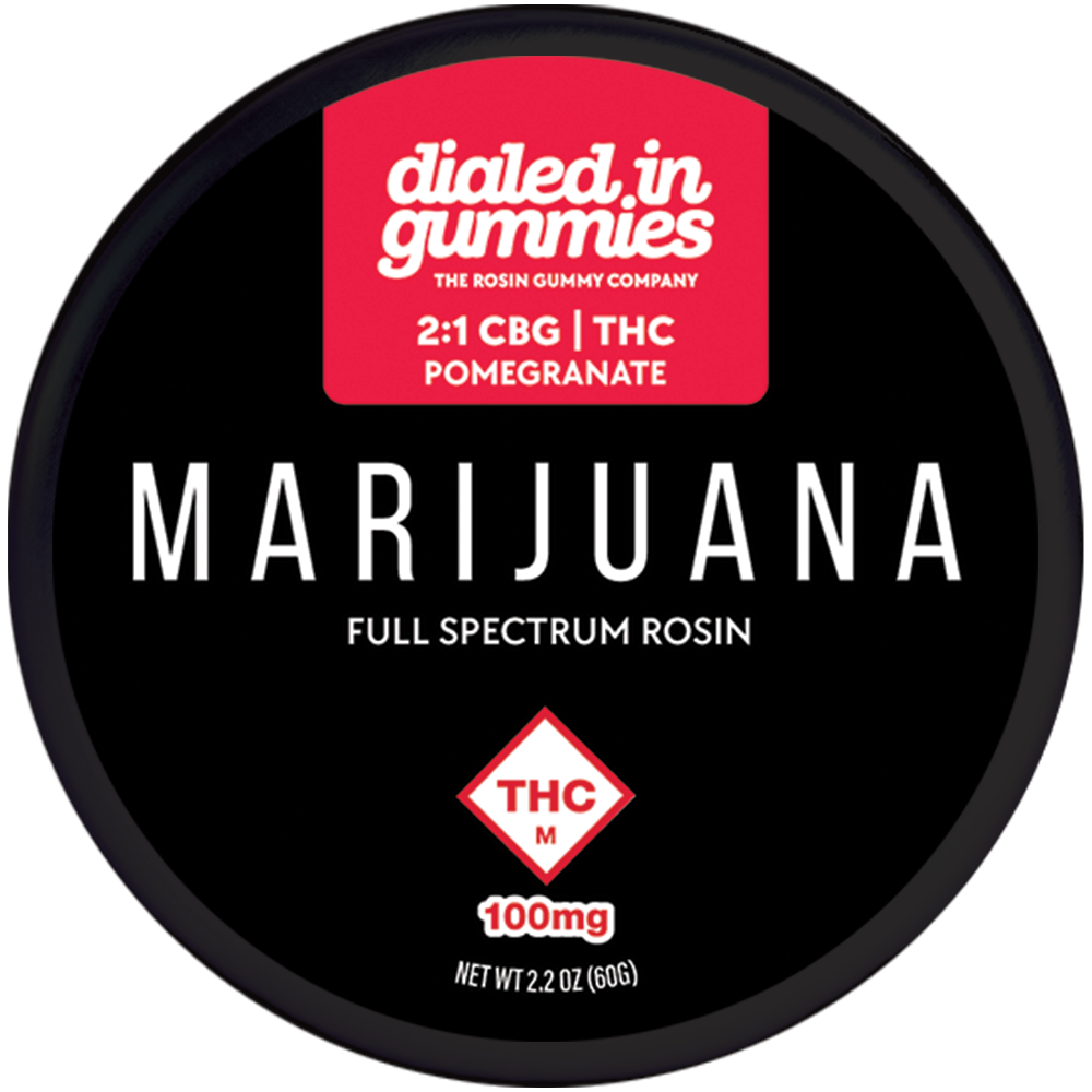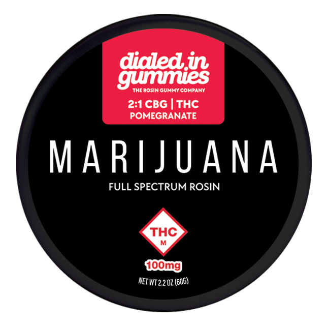 Dialed In Gummies | Pomegranate Relax 2:1 CBG/THC Hybrid Rosin Infused | 10pk 100mg