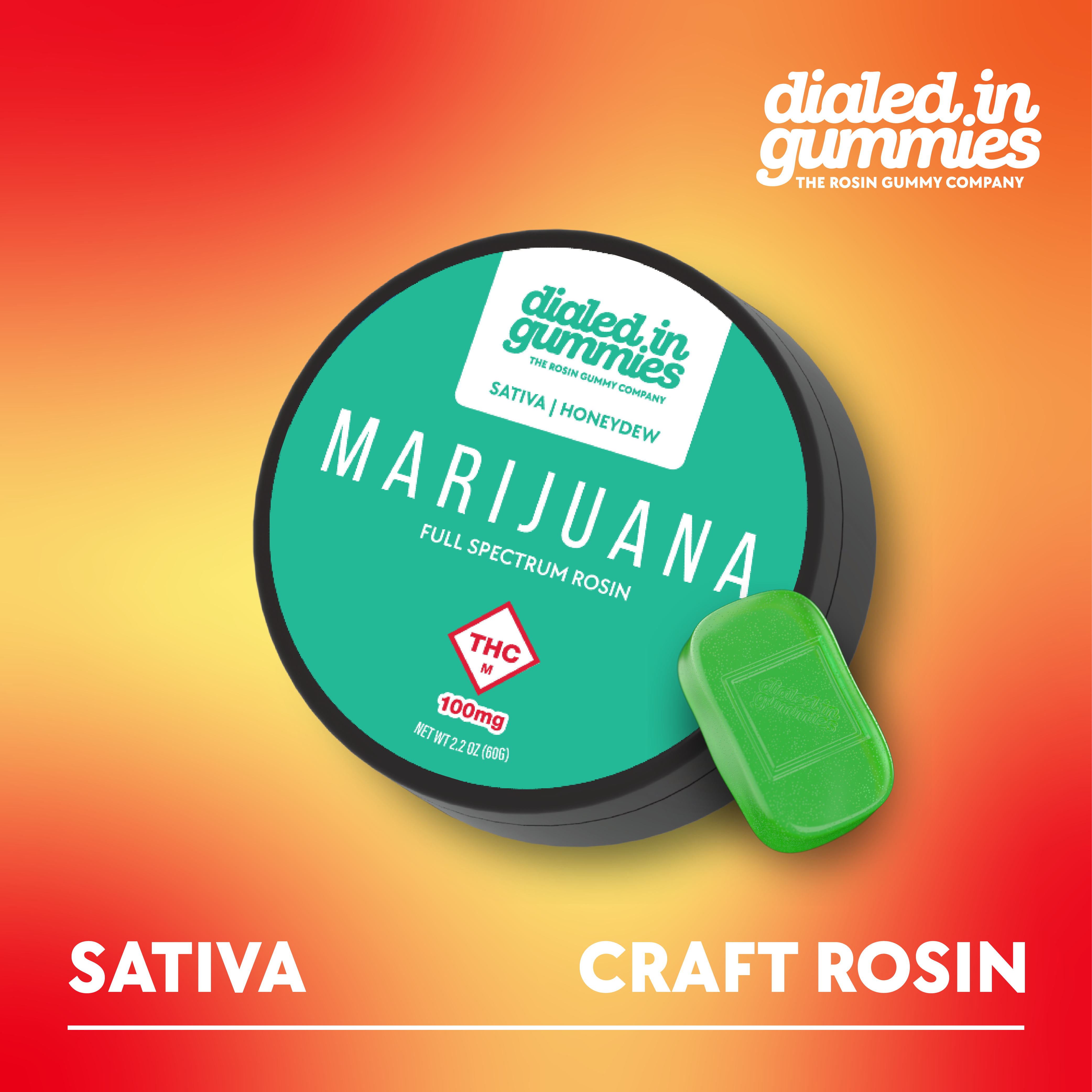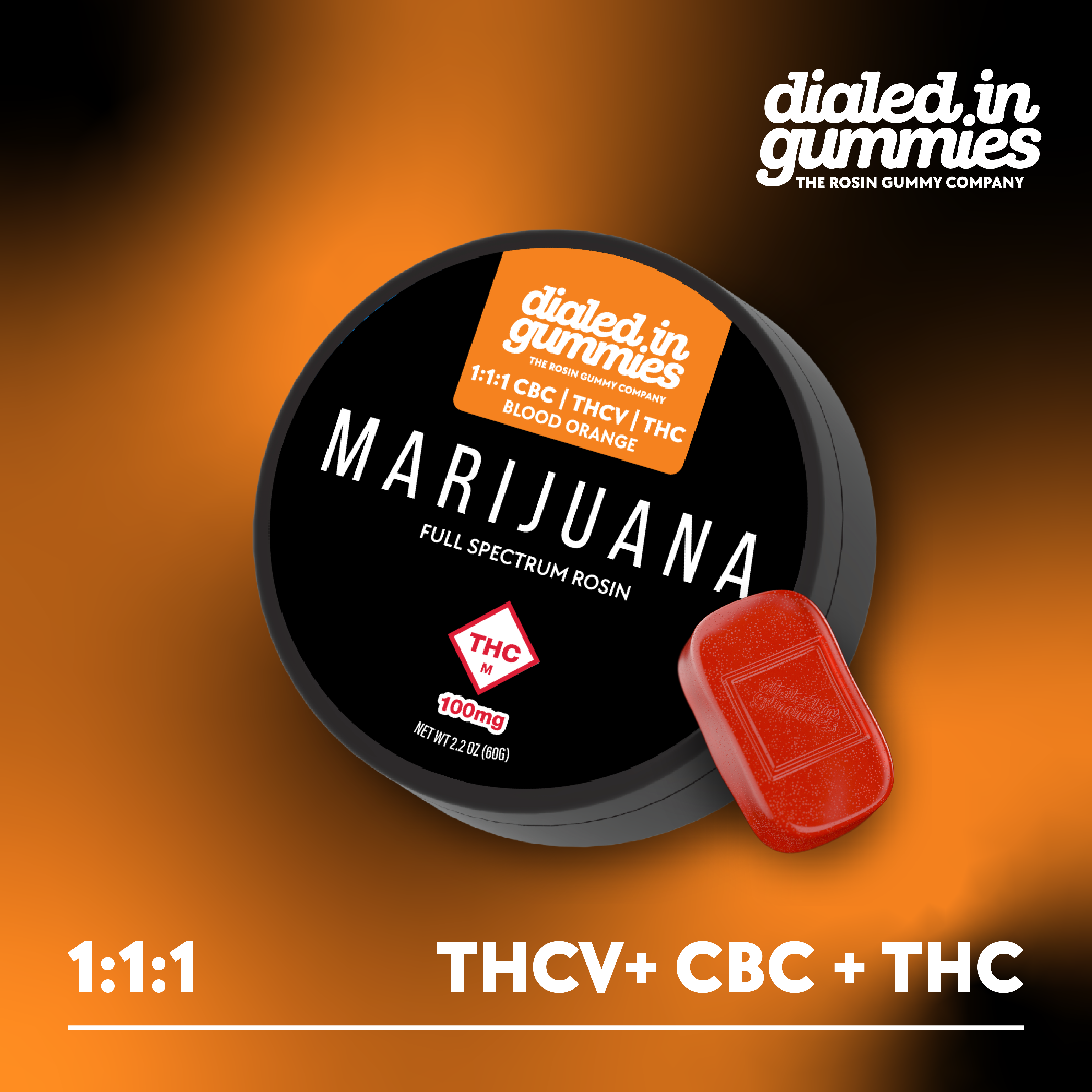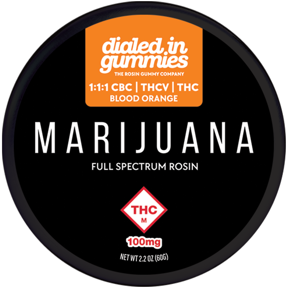Dialed In: Rosin Gummies | Blood Orange 1:1:1 | 100mg THC : 100mg THCV : 100mg CBC | 20pk