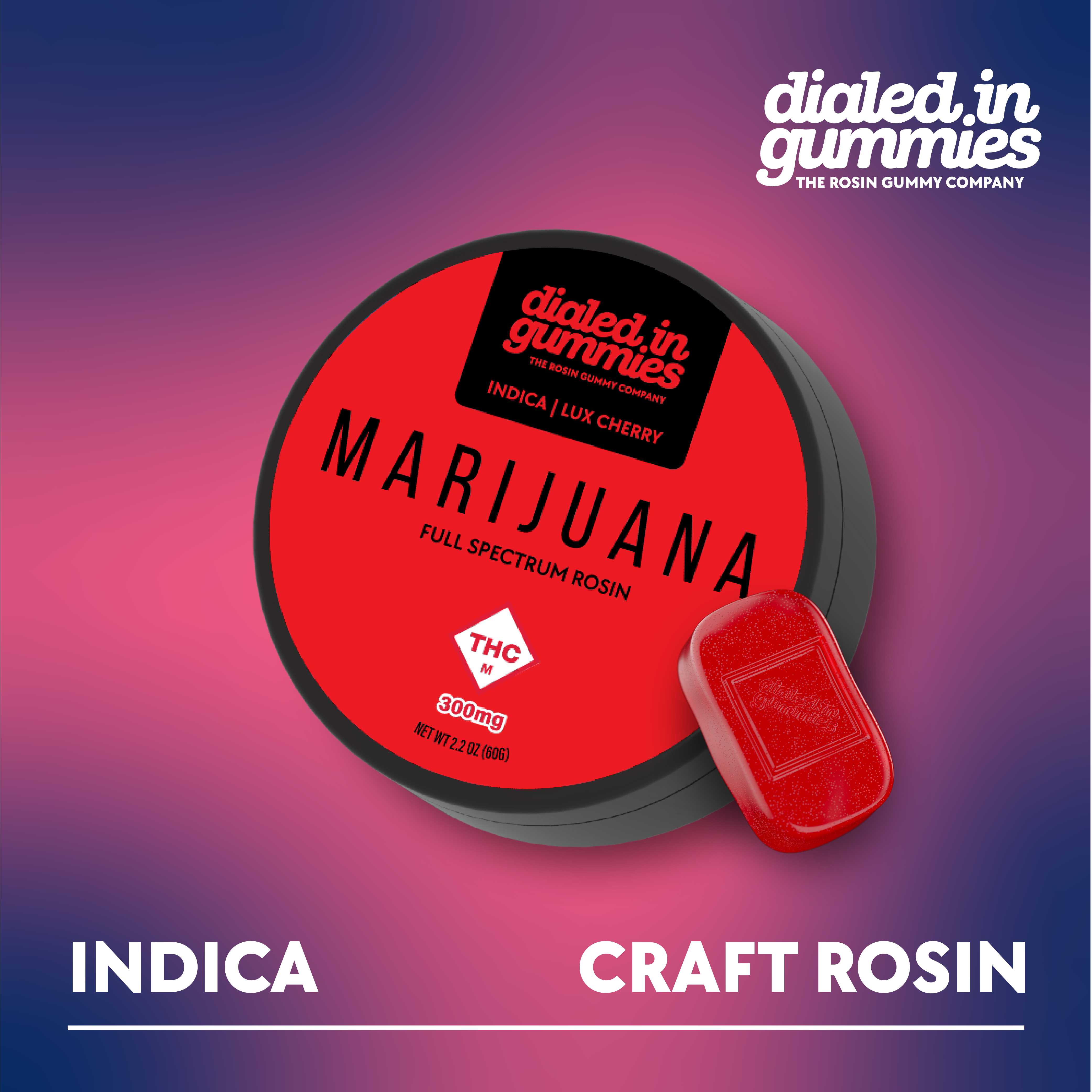 Dialed In Gummies | Lux Cherry - High Dose Indica Rosin Infused | 10pk 300mg
