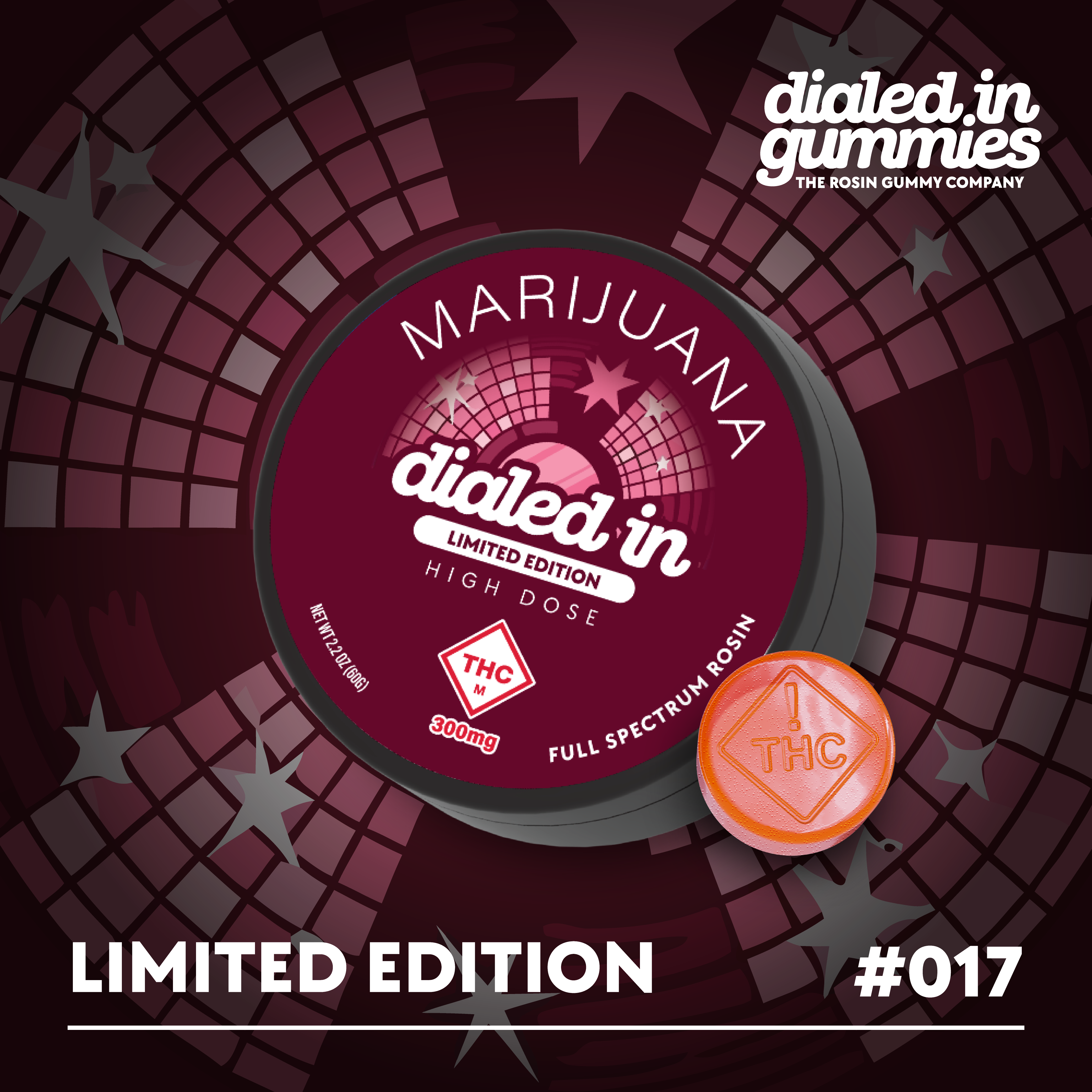 Dialed In | High Dose | Rosin Gummies | Indica | Grape Punch | 300mg 10pk